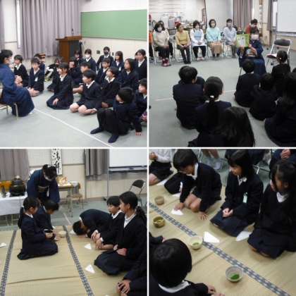 地域とのふれあい活動として、4年生が茶の湯体験にチャレンジしました。