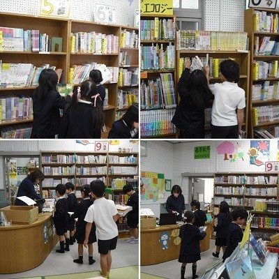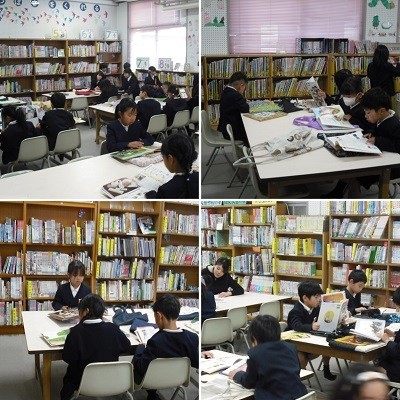 1年生の図書の時間です。それぞれが冬休みに読みたい本を見つけて、司書の先生に貸し出しの受付をしてもらっています。絵本、動物の本、乗り物の本、料理の本などさまざまです。そして、席について静かに本を読んでいました。読書では、いろいろな知識が得られ、語彙力、読解力、思考力、集中力を高めることができます。いろいろなジャンルの本を読んで、読書の習慣を身につけていってほしいと思います。