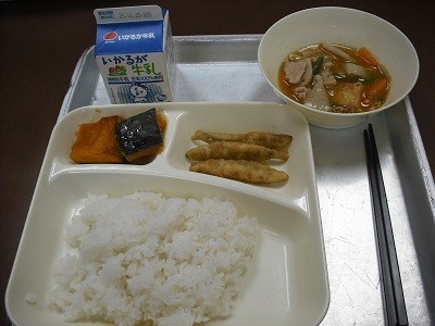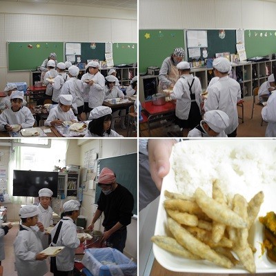今日12月22日は冬至です。3年生の教室では、栄養教諭の先生が冬至についてお話をしていました。冬至には運を呼び込むためにゆず湯に入り、無病息災を願ってかぼちゃ(なんきん)などの「ん」のつく食材を食べます。きょうの献立には「かぼちゃ」が入っています。子どもたちに人気だったのが「きびなごの天ぷら」でした。おかわりに行列ができて、お皿に盛り切れないぐらい、いっぱい食べている子もいました。