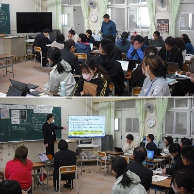 授業後には教職員で授業について意見交流を行い、指導主事の先生からは社会的な見方考え方を意識した問題解決的な授業の作り方について貴重な助言をいただきました。