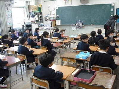 全校朝会をオンラインで行いました。校長からは、「あいさつ運動」が行われていることから、あいさつの大切さについて次のような話をしました。