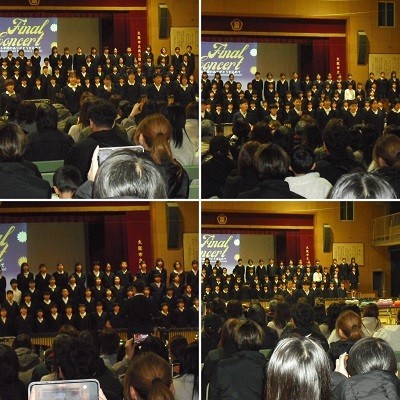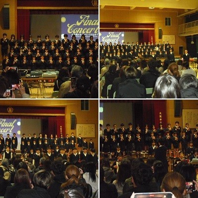 発表曲は①合唱「Wish~夢を信じて~」②合奏「いつも何度でも」③合奏「ラバーズコンチェルト」④合奏「ボーン・トゥ・ラブ・ユー」⑤合唱「仰げば尊し」⑥合唱「いのちのうた」でした。きれいなハーモニーを響かせた合唱、美しい音色のリコーダー奏、迫力ある合奏など、とても楽しめる内容で、保護者の皆さんからは大きな拍手をいただきました。