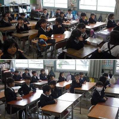 今日の朝の時間は放送による児童集会でした。内容はアニメのキャラクターの名前から、何のアニメかを当てるクイズです。ドラえもんやワンピースなどのキャラクターが登場しました。子どもたちはとてもよく知っていて、みんなほぼ全問正解でした。