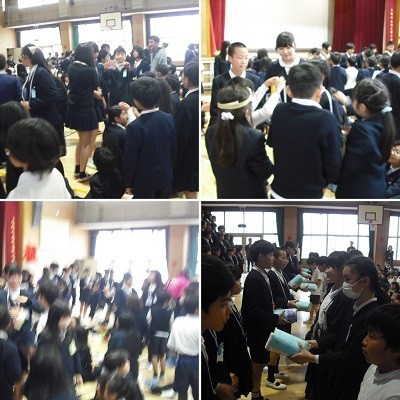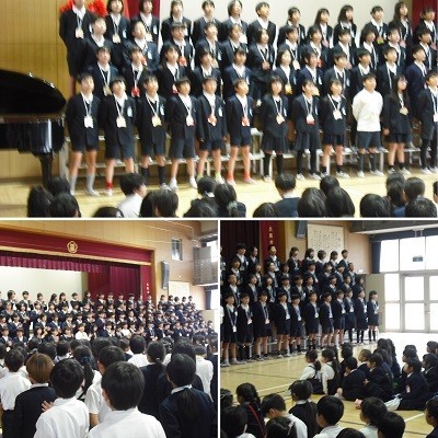 6年生からはとても心のこもった合唱「大切なもの」の歌声とともに「ありがとう」のメッセージ、そして手作りの雑巾の贈り物が、1年生から5年生に贈られました。