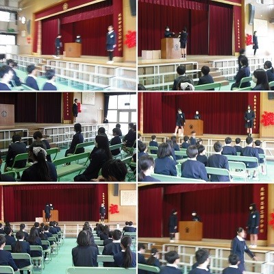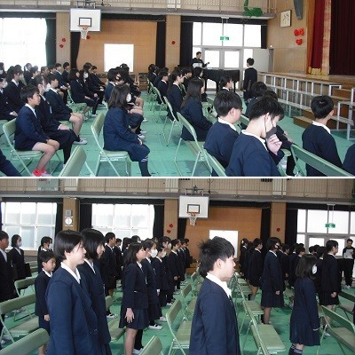 3月18日の卒業式に向けて、6年生は今週から講堂で卒業式の練習をしています。今日は卒業証書授与の練習です。担任の先生から名前を呼ばれたら、「はい!」と大きな返事をして、将来の夢や希望を発表して、卒業証書を受け取ります。
