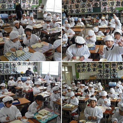 豚肉のたつた揚げが人気でした。1年生もたくさん食べるようになりました。