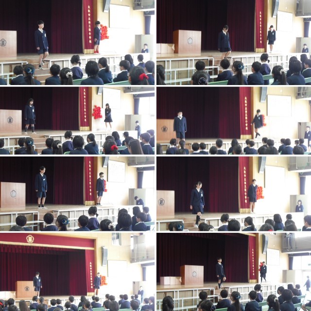 来週に本番を迎える卒業式。6年生の子どもたちも気持ちが入ってきました。1つ1つの動きが堂々としていて、返事や決意の言葉も大きな声が出るようになってきました。
