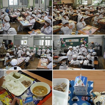 1年生は給食2日目です。今日は昨日に比べて準備はスムーズです。牛乳パックも上手に開けれるようになっています。みんなで手を合わせて「いただきます!」をしました。「おいしい!」という声がたくさん聞こえてきます。みんなで仲良く食べる給食は、とてもおいしいですね。