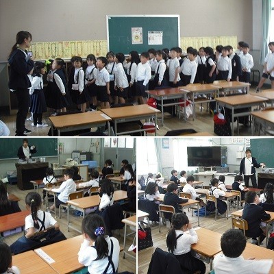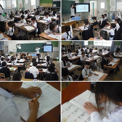1年生は学校生活に慣れ、元気いっぱいに学校生活を送っています。先生のお話をよく聞いて数字の書き方の練習をしているクラス、体育で楽しそうに鬼ごっこをして走っているクラス、並ぶ練習をしたり給食の運び方を教えてもらっているクラス、どのクラスの子どもたちも何事にも「やってみよう!」の気持ちで前向きに取り組んでいます。