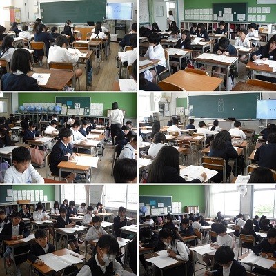 筆記音が聞こえるぐらいシーンとした教室で、子どもたちはテスト問題に取り組んでいました。