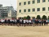 4月22日(月)今年度初めて、運動場で全校朝会を行いました。 1年生もきれいに並...