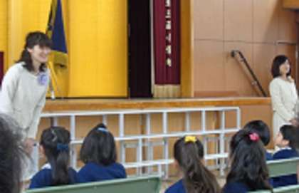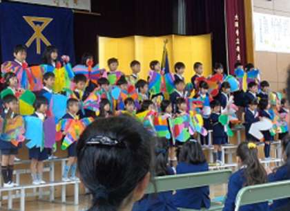 また、新2年生は、お祝いのよびかけや、1年間の学校の様子の紹介や歌、英語版の「はらぺこあおむし」などを披露してくれました。