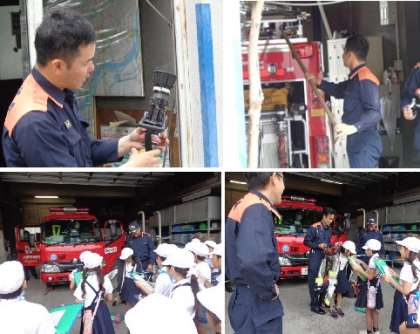 3年生と4年生が、「淀川消防署東三国出張所」へ見学に行きました。火事などから私たちの命を守ってくださる消防署の方々が、どんな仕事をしているのか、普段はどんな訓練をしているのかなど、くわしく教えていただきました。