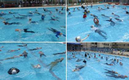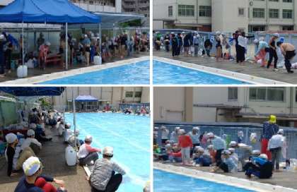 今日は、先週の高学年に続き、中学年が着衣水泳を体験しました。服を着て水に入り、歩いたり、走ったり、・・・。