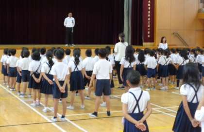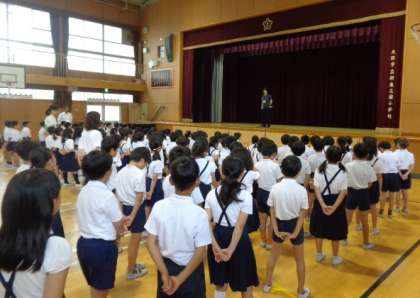 そのほか、夏休みを安全に楽しく過ごすためのお話などを聞き、最後はみんなで校歌を歌いました。