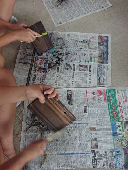 焼き板をピカピカに磨きましょう。