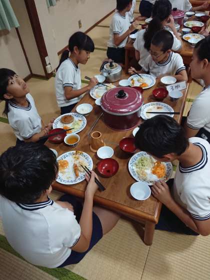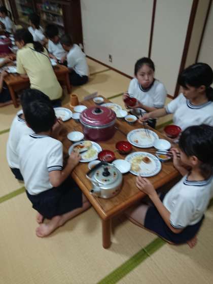 お風呂に仲良く入ったあと、夕食の時間になりました。昨日のように食事係は大活躍です。
