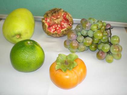 今年もカキ、ミカン、ブドウ、カリンにザクロと美味しそうな実が枝いっぱいに垂れ下がっています。