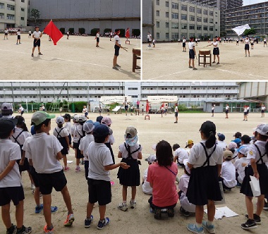 たくさんの子どもたちが運動場に集まり、応援団のかけ声に合わせ、応援の練習をしました。