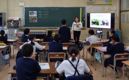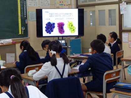 4年生が、社会科の「大阪府の特色ある地域」の学習に関連して、柏原市のぶどう作りについて学習しました。
