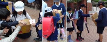 玄関では、さっそくたくさんの子どもたちが募金に協力してくれていました。