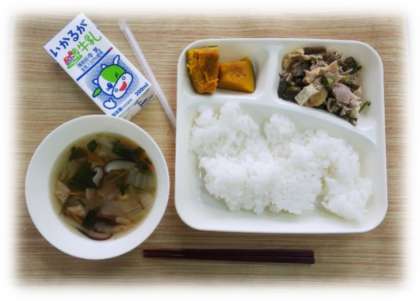 今日の給食には、「焼きかぼちゃ」が登場しました。