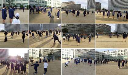 「転がしドッジボール」や「だるまさんがころんだ」「なわとび」など、たてわり班で仲良く活動する姿が見られました。