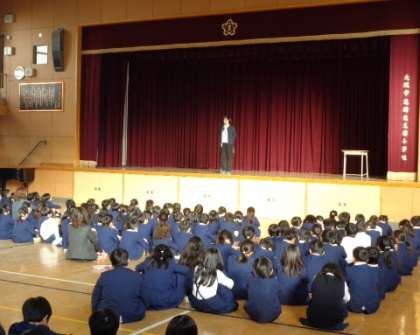 さて、明日から冬休みが始まります。安全で規則正しい健康な生活を心がけ、けがや事故、病気などに気をつけて、楽しい冬休みを送ってほしいと思います。