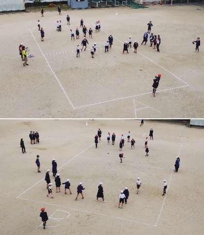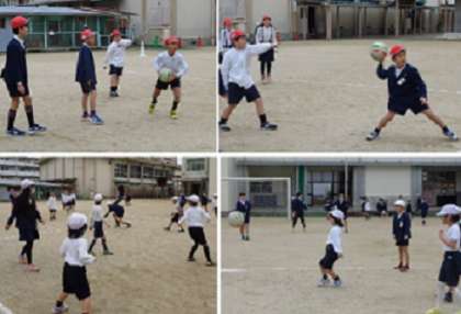 初日の今日は、「赤のド」チームと「黄のド」のチームの試合からスタートしました。低学年から高学年まで、一つのチームになってとても楽しそうに活動していました。
