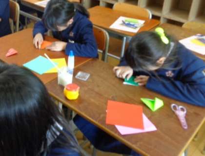 丁寧に指導していただきながら、どの子もみんな熱心に折り紙に取り組んでいました。
