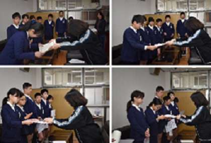 6年生の「人権標語作品」への表彰と「絵画作品」への表彰を、校長室で行いました。