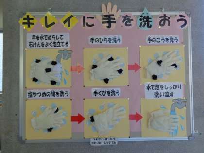 そこで、今は「キレイに手を洗おう」という掲示になっています。
