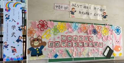 入学式の看板の前で記念写真を撮ってもらったり、担任の先生に改めて「よろしくお願いします。」とあいさつをしたり、6年生のお兄ちゃんお姉ちゃんのお話を聞いたり、いつもの年とは少しちがうけれど、素敵な式になりました。