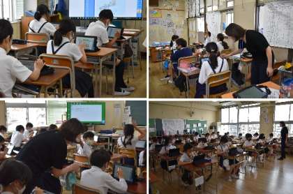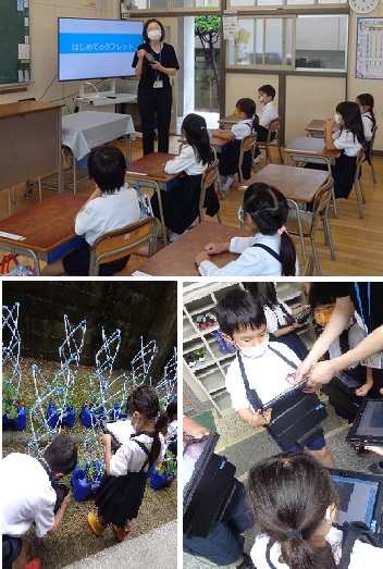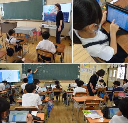 1年生は初めてタブレットにふれた子も多く、「写真が大きくなった!」「自分でできた!」「指で字が書けた!」と目をキラキラさせながら、みんな楽しそうに学習に取り組んでいました。