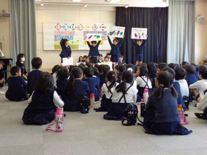 そのあと、1年生と一緒に歌を歌ったり、劇をして見せたり。