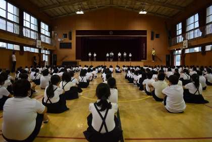 今朝の児童集会で、計画委員会から全校児童に、メンバーの自己紹介と、今年一年間の児童会のめあてについて報告がありました。今年のめあては、「遊びのルールを守って、楽しく外遊びをしよう」です。