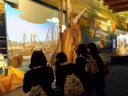 再現した発掘現場を見たり、地層のパズルやつぼの復元に挑戦したりしました。