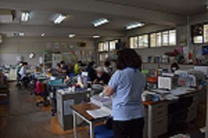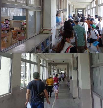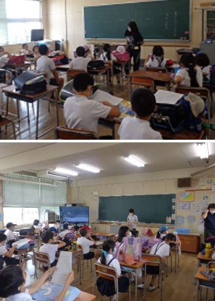「大型台風の接近情報」が入ったという想定で、まずは臨時の職員会議を持ち、それを各学級の児童に伝え、町会ごとの教室に避難しました。