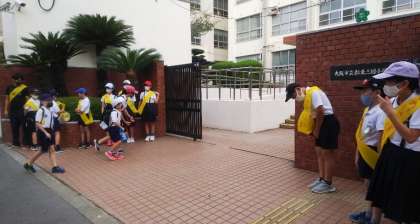 計画委員の子どもたちが、登校してくるみんなに声をかけています。