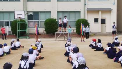 修学旅行に向けて「全校朝会での折り鶴披露」