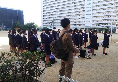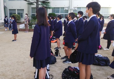 とても気持ちのいい天気の下、6年生が広島へ向け、修学旅行に出発しました。