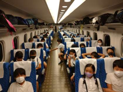 新幹線のぞみ号に乗りました。車内でもマナーが素晴らしく、静かに過ごしています。