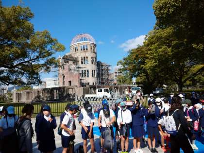 原爆ドームは保存工事中でした。戦争を忘れないために残していくためです。