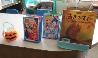ハロウィンに関連した本もたくさんあります。図書室をいっぱい利用して、いろんな本にふれてほしいと思います。