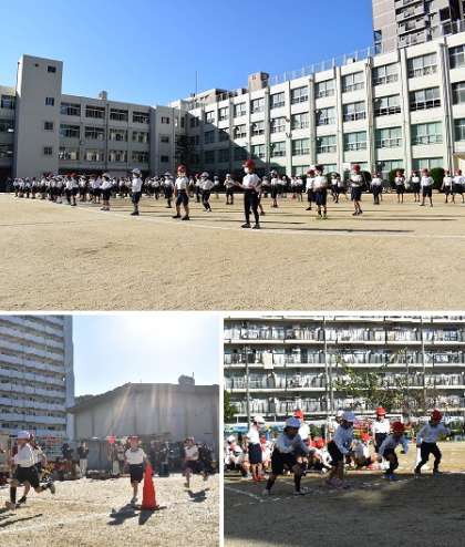 秋晴れの空の下、みんな元気にかけっこや団体競技、ドッジボールなどに汗を流しました。