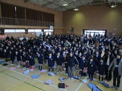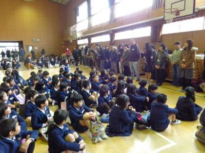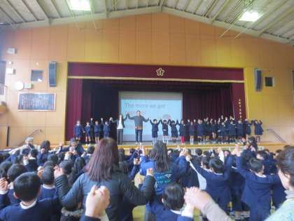 セレモニーの最後は、本校に来てくださっているC-NET(ネイティブスピーカー)のケリー先生のリードで、“The More We Get Together.”を全員で歌いました。