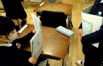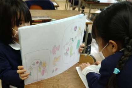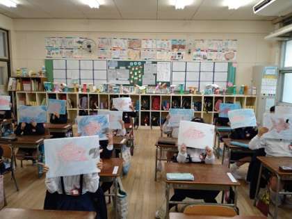 1年生が国語の学習でスイミーの紙芝居をつくりました。