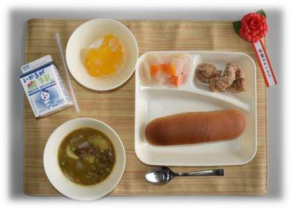 今日の給食は、6年生の卒業をお祝いする行事献立でした。