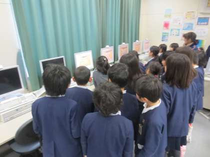 「4年生になったらどのクラブに入ろうかな?」子どもたちは熱心に見学していました。(写真はパソコンクラブです)