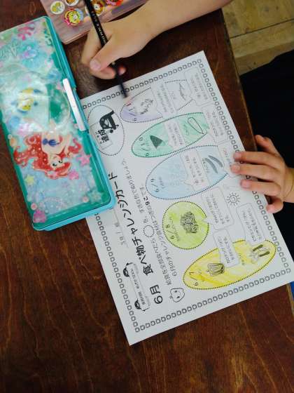 食育で、チャレンジカードを使って苦手なものにも挑戦しました。